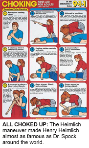 Whoever had the original idea, Heimlich, who declined all requests to be interviewed for this article, deserves credit for his marketing skills. He had a way with the media; in the late '70s and early '80s he attracted widespread coverage of the Heimlich maneuver, while accusing the Red Cross of risking lives by refusing to recommend it over the application of back blows, which was then the standard intervention for choking victims. His point was neatly driven home by slogans such as back blows are death blows."