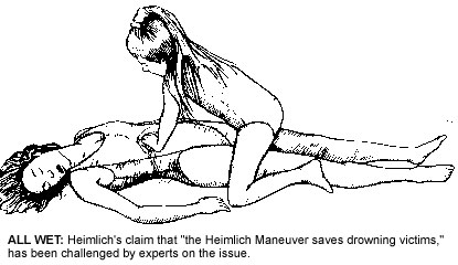 The maneuver-for-drowning campaign was based on the premise that water must be forced out of the lungs. "You can't blow air into water-filled lungs," according to Heimlich's slogan.
